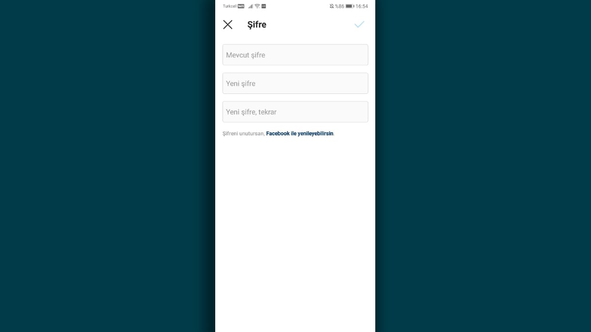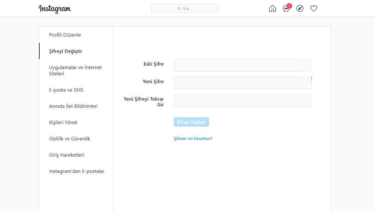 Formül #1: Instagram hesabı içinden şifre değiştirme: